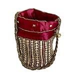 Marron Beaded fabric wedding potli for ladies for women handbags traditional Indian Wristlet with Drawstring Ethnic Embroidery Women Fashion Potli