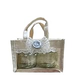Meka Creations white Jute Gifting Bag with 2 jar (300 ml) for Return Favours, Diwali, Rakhi, Baby Shower, New Born Announcement, Cookies, Dry Fruit, Chocolates Gifting – Included 2 Jar