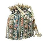 Looking for an ideal traditional Potli bag for your accessories? Here is, the perfect Potli bags to carry on your traditional and even more perfect giveaway product. Here it is.. Grab it soon. This Potli bag features royal designs of premium brocade material. We are glad you love our designs. But we are sure you will fall in love with our quality and finishing too! Being lightweight, these bags can easily be wrapped around the wrist using their drawstrings. It has a braid string on the top for ease to carry. You can easily carry a big mobile phone, valuables items, cosmetics, etc. as this Potli has a spacious compartment. This Potli bag has a beautiful handle, made with high-quality pearls which look awesome and are easy to carry.