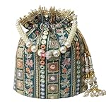 MILAN’S CREATION MultiColor Embroidery Potli Bag With Pearl Handle & Tassel Wedding Trendy Purse Women’s Handbag