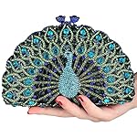 MOSSMON Peacock Luxury Rhinestone Crystal Evening Clutch Bag Sparkly Bride Wedding Party Purses for Women