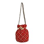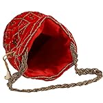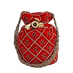 myDsGifts Women’s Hand Embroidered Velvet Potli Bag (Single, Red)