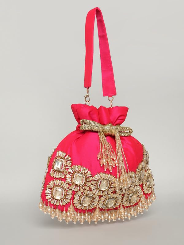 Nahhar Fashion Designer Potli Bag with Mirror Work – Traditional Indian Pouch for Celebrations