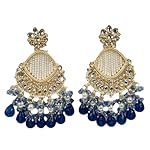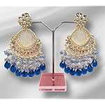 Introducing the latest arrival of exquisite Ocean blue colour earrings, a perfect blend of elegance and glamour. These stunning earrings feature a light gold plated design adorned with sparkling crystals, intricate kundan work, and lustrous pearls. Measuring approximately 9cm in length and 5cm in width (3.5 inches and 2 inches respectively), these earrings are a statement piece that will elevate any outfit. Suitable for every event and party, these earrings will enhance your look and give you a luxurious glam. Specially designed for girls and women, these earrings are a must-have accessory that will make you the centre of attention. With their vibrant colour and intricate craftsmanship, these earrings are sure to add a touch of sophistication and charm to your ensemble. Embrace the beauty of Indian craftsmanship and indulge in the timeless allure of these Ocean blue colour earrings.