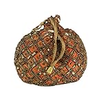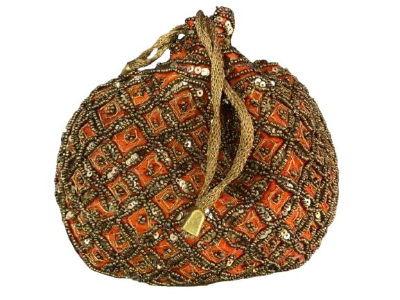OLL luxury orange color satin fabric zari-zardosi handcrafted batua style beaded work with drawstring and beads handles potli bags or wristlets for girls/women