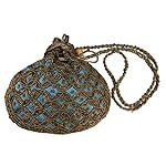 OLL OO LA LA BEAUTY luxury sky blue color satin fabric zari-zardosi handcrafted batua style beaded work with drawstring and beads handles potli bags or wristlets for girls/women