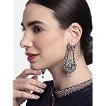 OOMPH Jewellery Oxidised Silver Tone Kundan & Pearls Large Ethnic Drop Earrings For Women & Girls Stylish Latest