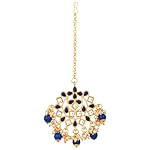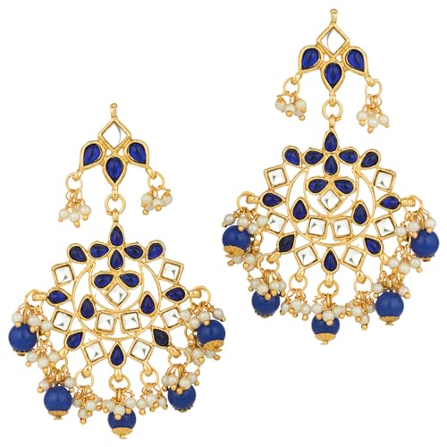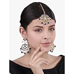 Peora 18K Gold Plated Kundan Faux Pearl Chandbali Earring Maang Tikka Jewellery Set for Women Girls