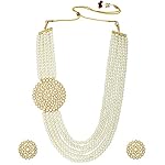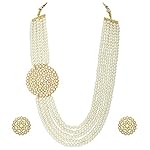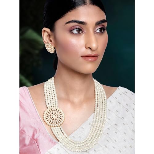 Peora Gold Plated Traditional 5 Layer Kundan Pearl Long Necklace Earrings Jewellery Set for Women