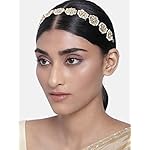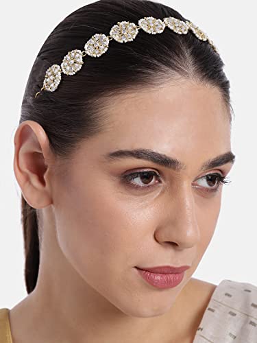 Peora Gold Plated Traditional Floral White Kundan Pearl Studded Rajasthani Sheeshphool/Mathapatti for Women and Girls