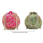 Potli bag (Pack of 2 Potli) Rani and Parrot Green Matka Designer handbags for Women wedding party and Return gift potli bags for party accessories