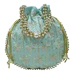 Purple Pink Raw Silk Potli Bag For Women For Wedding, Wristlets, Clutch For Women Drawstring Potli Women’s Handbag Purse Batwa For Bridal Girls Evening Party Batua Purse With Pearl Handle