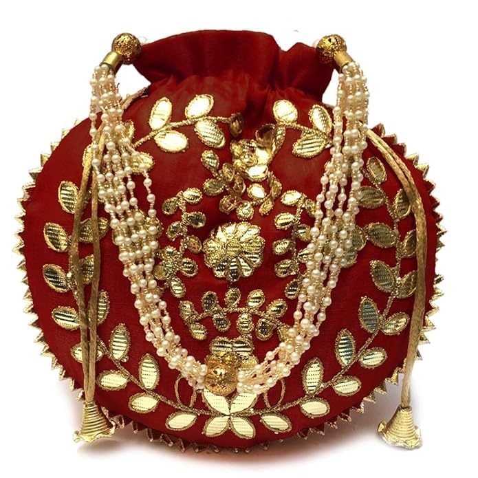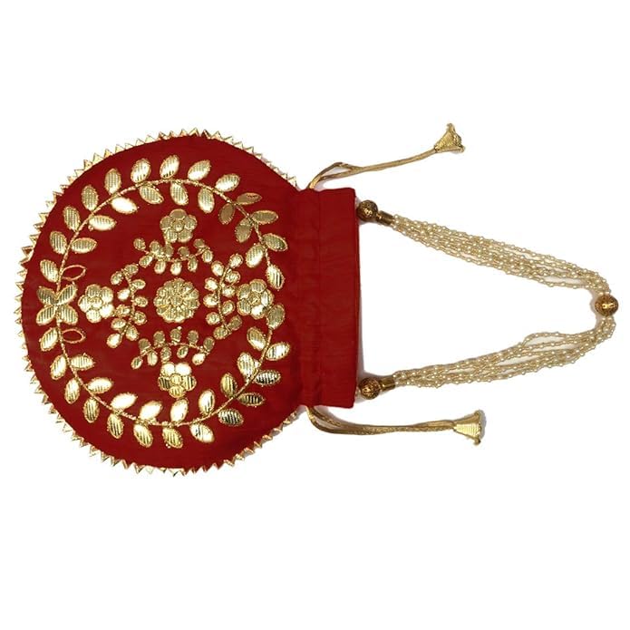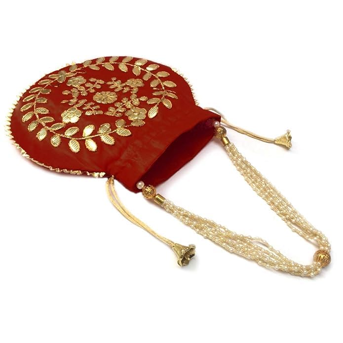 Rajasthani Potli For Women & Girls || Rajasthani Style || Royal Clutch Silk Potli Batwa Bag || Beads Work Bridal Purse || Gota Patti Potli