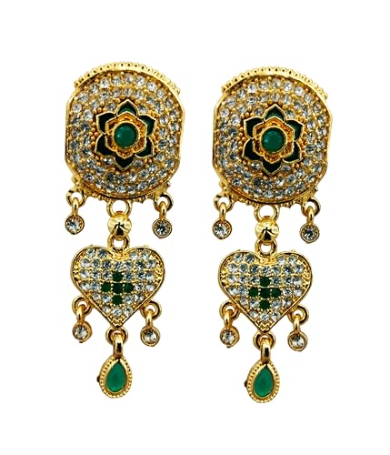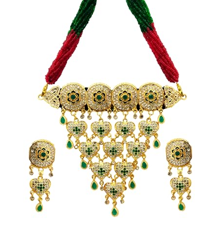 Experience the epitome of Indian ethnic elegance with this exquisite jewelry set inspired by the timeless beauty of Madhuri Dixit. Crafted with meticulous attention to detail, this stunning necklace and earrings set exudes a captivating charm that will elevate any ethnic ensemble. The vibrant green hue, reminiscent of lush emeralds, adds a touch of regal opulence to your look. Adorned with intricate designs and intricate craftsmanship, this jewelry set is a true testament to the rich cultural heritage of India. Whether you’re attending a festive occasion or simply seeking to embrace your cultural roots, this Madhuri Dixit inspired jewelry set will make you feel like a true diva. Embrace the essence of Indian grace and sophistication with this remarkable piece that seamlessly blends tradition with contemporary style. Measurements may vary slightly due to the handcrafted nature of the product.