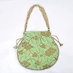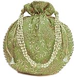 Match your outfits with this potli bag. Complement your outfit with this colored potli bag. It features a drag string closure for easy access. Made from silk embroidered fabric, it should add grace to your outfit. To add elegance while carrying, it has a pearl handle. With (9×8.5) inch size, it provides sufficient space to carry essentials.