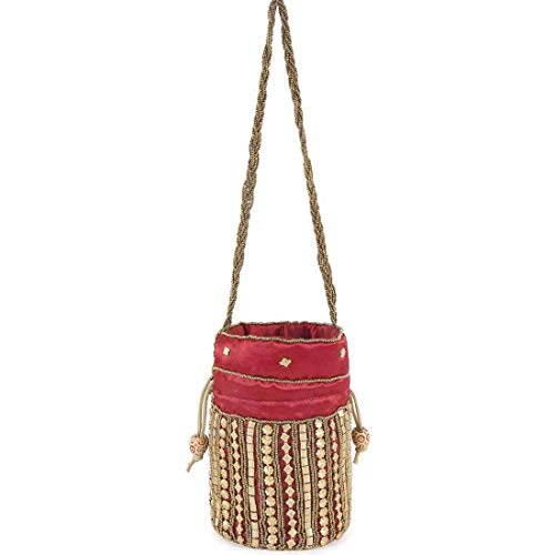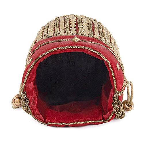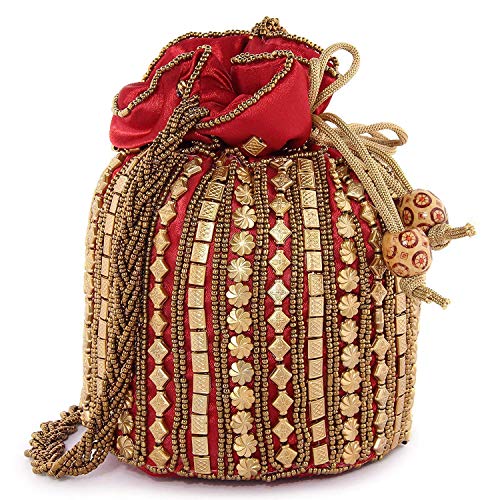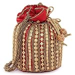 Red Beaded fabric wedding potli for ladies for women handbags traditional Indian Wristlet with Drawstring Ethnic Embroidery Women Fashion Potli