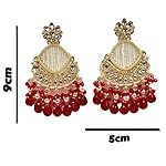 Introducing the latest arrival of exquisite red colour earrings, a perfect blend of elegance and glamour. These stunning earrings feature a light gold plated design adorned with sparkling crystals, intricate kundan work, and lustrous pearls. Measuring approximately 9cm in length and 5cm in width (3.5 inches and 2 inches respectively), these earrings are a statement piece that will elevate any outfit. Suitable for every event and party, these earrings will enhance your look and give you a luxurious glam. Specially designed for girls and women, these earrings are a must-have accessory that will make you the centre of attention. With their vibrant colour and intricate craftsmanship, these earrings are sure to add a touch of sophistication and charm to your ensemble. Embrace the beauty of Indian craftsmanship and indulge in the timeless allure of these red colour earrings.