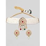 Playful Elegance with a Touch of Luxury: The 24K gold toned finish adds a touch of grandeur, perfectly complementing the vibrant colors of the reverse AD stones. The pearls offer a touch of elegance and balance, creating a playful yet sophisticated look for any occasion. Unique Design with Enduring Appeal: Reverse AD stones offer a captivating effect, and the combination with multicolored beads creates a one-of-a-kind design. The addition of pearls provides a timeless touch, ensuring this choker set remains relevant and stylish for years to come. Choker Style for Statement Making: The choker style ensures the intricate design with its reverse AD stones and pearls sits prominently around your neck. It creates a bold and eye-catching statement piece that complements various necklines. Versatility Beyond Celebrations: Despite its vibrant colors and potential festive vibe, this choker set can be surprisingly versatile. Dress it up for a night out or a festive occasion, or add a touch of playful elegance to a casual outfit. Perfect Gift for the Trendsetter: This unique choker set makes a thoughtful gift for someone who appreciates setting trends and showcasing their individuality. The combination of colors, textures, and the choker style creates a one-of-a-kind piece that is sure to turn heads.