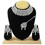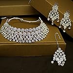 SAIYONI Womens Dazzling Silver Plated Austrian Diamond Choker Necklace Set