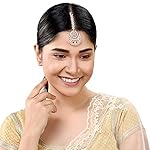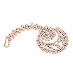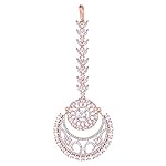 SARAF RS JEWELLERY Rose AD Studded Half Moon Shaped Handcrafted Maang Tika for Women & Girls