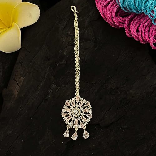 Sasitrends Beautiful AD/American Diamond Studded Rhodium Plated Maan Tikka for Women and Girls | Maang Teeka Maang Tika for Women and Girls Latest