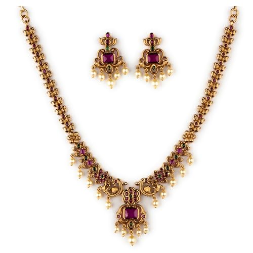 Sasitrends Enchanting Gold Plated Peacock and Floral Pearl Necklace Jewellery Set for Women & Girls