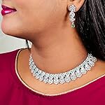 Our exquisite Floral American Diamond Jewellery Set will provide a glamorous touch to your outfit. It is made of sturdy brass and has a rhodium silver finishing. Perfect for religious celebrations, marriage proposals, or social gatherings, this considerate gift comes in a classy box. All you need to do is keep it chemical-free and dry to preserve its charm. Put your trust in Sasitrends unwavering dedication to quality and sophistication, which offers a timeless combination.