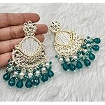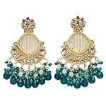 Introducing the latest arrival of exquisite sea green colour earrings, a perfect blend of elegance and glamour. These stunning earrings feature a light gold plated design adorned with sparkling crystals, intricate kundan work, and lustrous pearls. Measuring approximately 9cm in length and 5cm in width (3.5 inches and 2 inches respectively), these earrings are a statement piece that will elevate any outfit. Suitable for every event and party, these earrings will enhance your look and give you a luxurious glam. Specially designed for girls and women, these earrings are a must-have accessory that will make you the centre of attention. With their vibrant colour and intricate craftsmanship, these earrings are sure to add a touch of sophistication and charm to your ensemble. Embrace the beauty of Indian craftsmanship and indulge in the timeless allure of these rama green colour earrings.