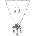Shining Diva Fashion Latest Oxidised German Silver Afghani Long Chain Pendant Earrings Necklace Jewellery Set for Women (Silver) (12013s)