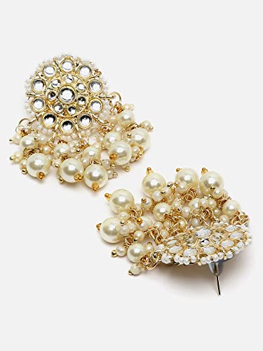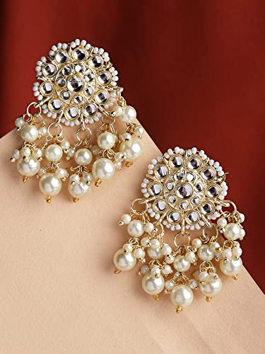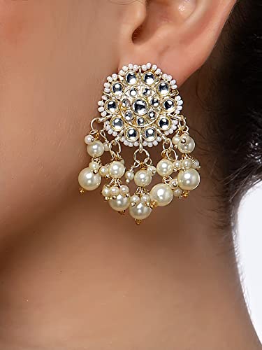 Shining Diva Fashion Latest Stylish Traditional Kundan Pearl Earrings for Women and Girls (13813er)(White)
