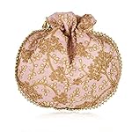 STLYZ Traditional Embroidered Potli Bag For Women, Handmade Pure Silk Potli Handbag Wristlets Ethnic Bridal Potli Batwa Bag For Ladies For Wedding, Return Gifts (Baby Pink)