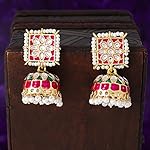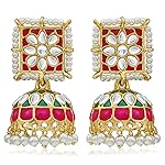 Sukkhi Ethnic Brass Pearl Gold Plated Kundan Meenakari Jhumki Earring for Women (SKR56862, Multicolour)