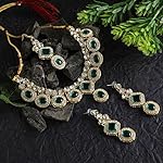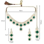 TANAIRA Green Color Stones Choker Necklace Earrings Maangtika Set For Women & Girls/Gold Color crystal Bridal Jewellery Set for Wedding |Birthday Gift for girls and women Anniversary Gift for Wife