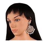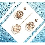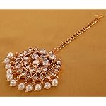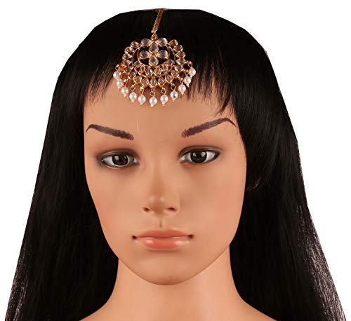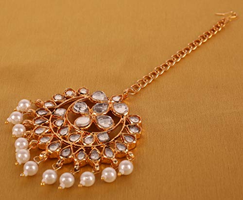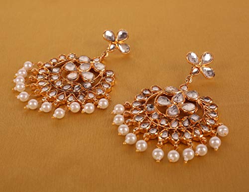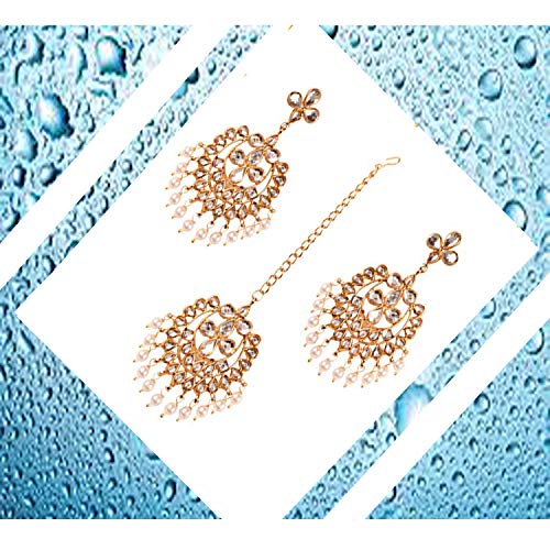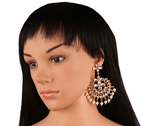 Touchstone Contemporary Gold Tone Kundan Collection Indian Kundan Polki Look Faux Pearls Hangings Long Designer Earrings and Mangtika for Women