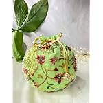 Trendy Crafts- Drawstring Closure Silk Potli | Hand embroidery Thread Work Wristlet for women | Silk Embroidered Women Clutch | Handmade Bridal Batwa | Ethnic Potli Pouches for Return Gift