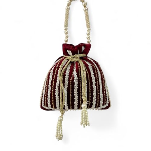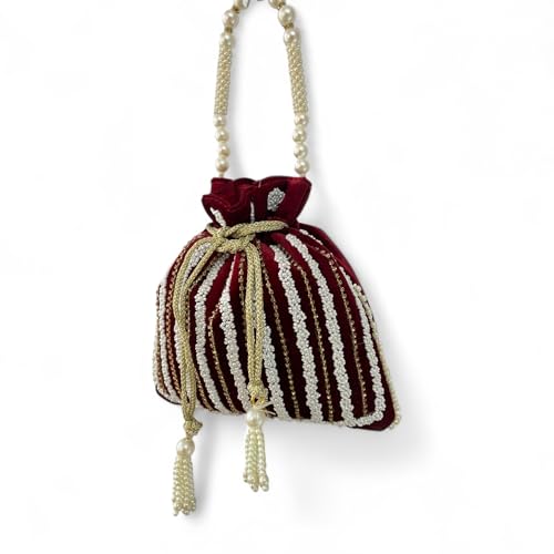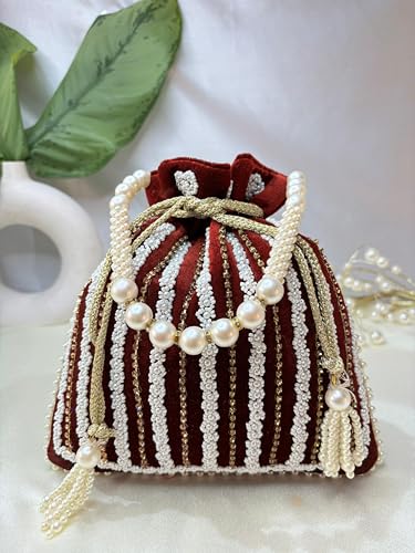 Trendy Crafts- Velvet Potli Bags for women | Handmade Embroidery Beads Work Batwa | Velvet Embroidered Women Wristlet | Beaded Purse | Bridal Clutch Bags | Ethnic Potli Pouches for Return Gift