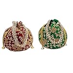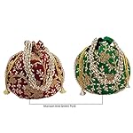 Truvic Potli bag (Pack of 2 Potli) Maroon, Green Matka Designer handbags for Women wedding party and Return gift potli bags for party accessories .Outer Golden Embroidered Design
