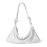 Valleycomfy Chic Rhinestone Purses for Women Sparkly Evening Handbag Bling Hobo Bag Shiny Silver Clutch Purse, Sliver