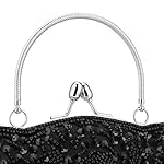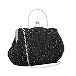 Vistatroy Floral Designer Evening Bag Beaded Sequin Design Vintage Kissing Lock Satin Clutch Purse Bag Wedding Party Clutch, Black, One Size