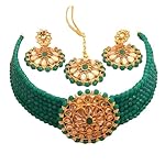 Womens Gold Plated Pearl Beaded Adjustable Choker Necklace with Earring Maang Tikka Jewellery Choker Necklace Set For Women