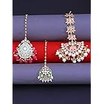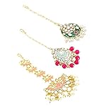 Yellow Chimes Combo of Traditional Gold Plated Studded Kundan Beads Design Ethnic Maang Tikka for Women and Girls