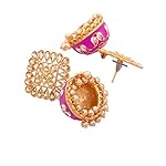 Yellow Chimes Ethnic Gold Plated Kundan Studded Meenakari Pearl Beads Chandbali Jhumka Earrings for Women and Girls
