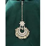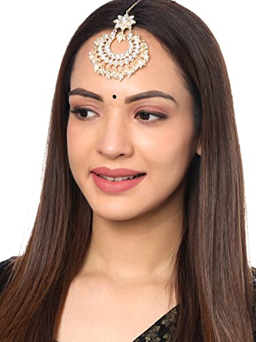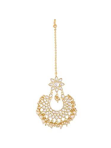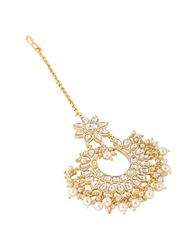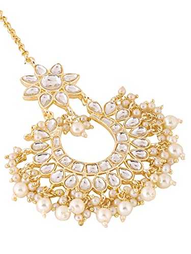 Yellow Chimes Maang Tikka for Women Gold Plated Kundan Studded Beads Drop Maangtikka for Women and Girls