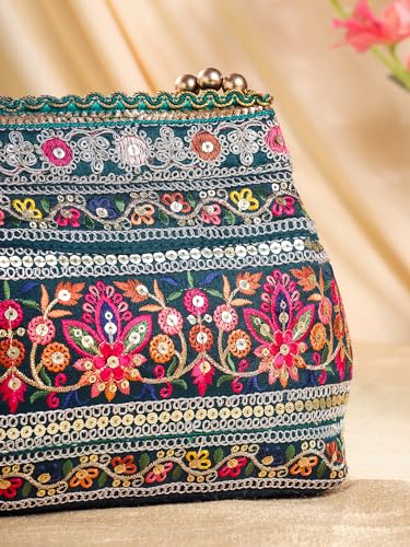 Yellow Chimes Potli Bags For Ladies For Wedding | Traditional Potli Handbags For Women | Pearl Beaded Wristlet Handmade Embroidery Worked Potli Bag | Ideal for Parties Weddings or Traditional Events
