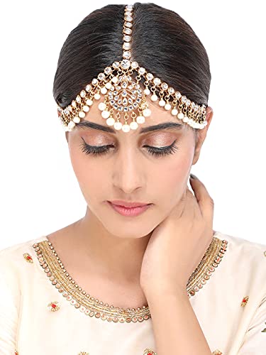 Yellow Chimes Traditional Maang Tikka Gold Plated and Kundan Studded Ethnic Design for Women and Girls