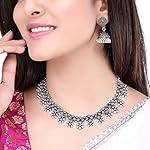 Yellow Chimes Traditional Silver Oxidised Kohlapuri Jewellery Choker Necklace Set for Women