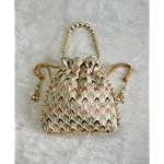 YO VINTAGE Designer Silk Potli Bag with Pearl Beaded Wristlet for Women and Girls with Handmade Embroidery ideal for traditional outfits at parties/weddings| Round Drawstring handbag
