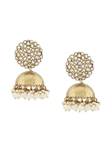 Zaveri Pearls Antique Gold Tone Kundan Embellished Jhumki Earring For Women-ZPFK14763