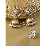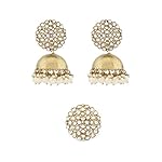 ZAVERI PEARLS Antique Gold Tone Traditional Kundan Jhumki Earring & Ring Set For Women-ZPFK13163