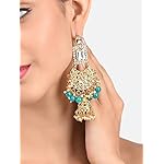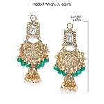 ZAVERI PEARLS Base Metal Mesmerising Long Kundan Jhumki Earring for Women (ZPFK9133, Gold, Green)